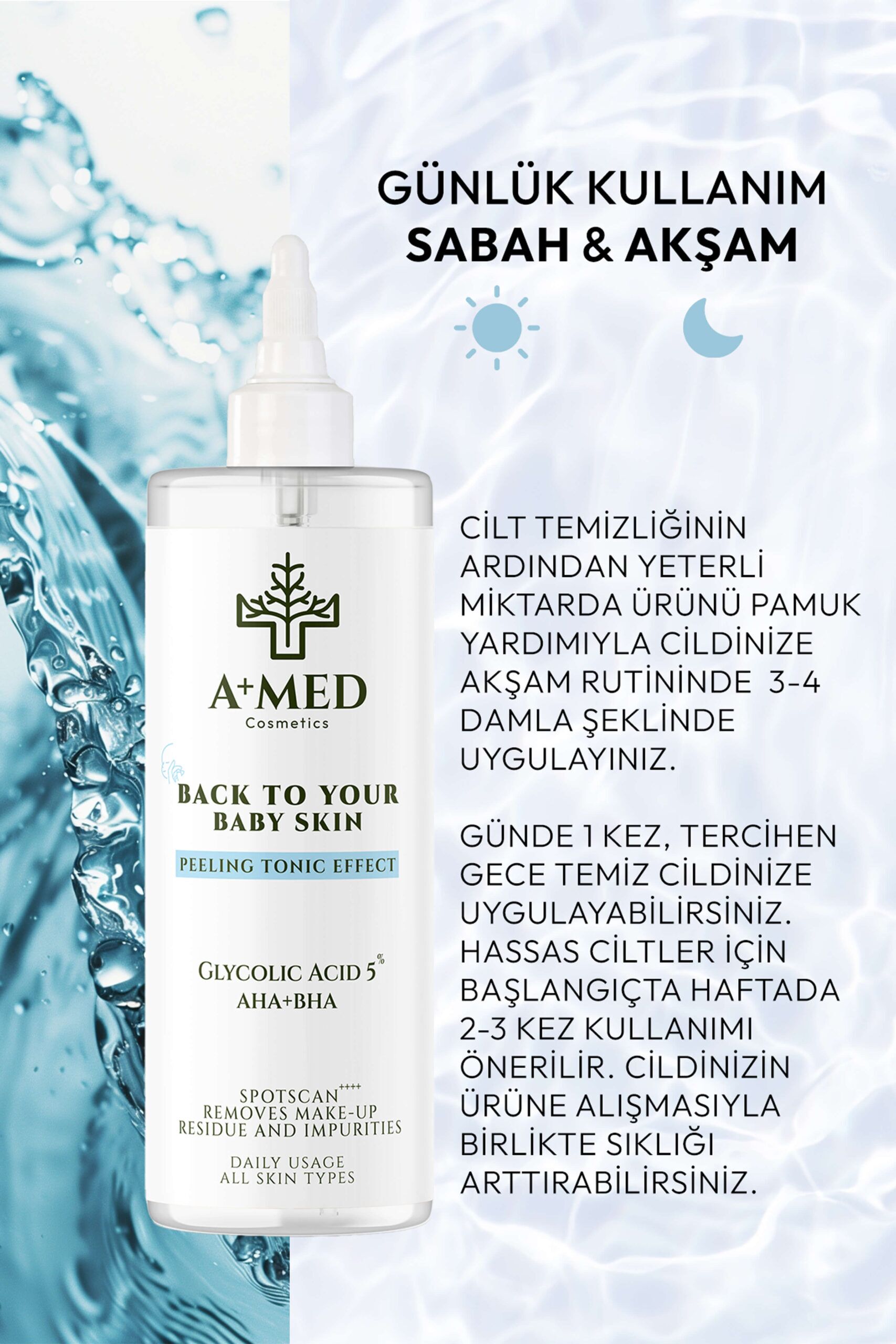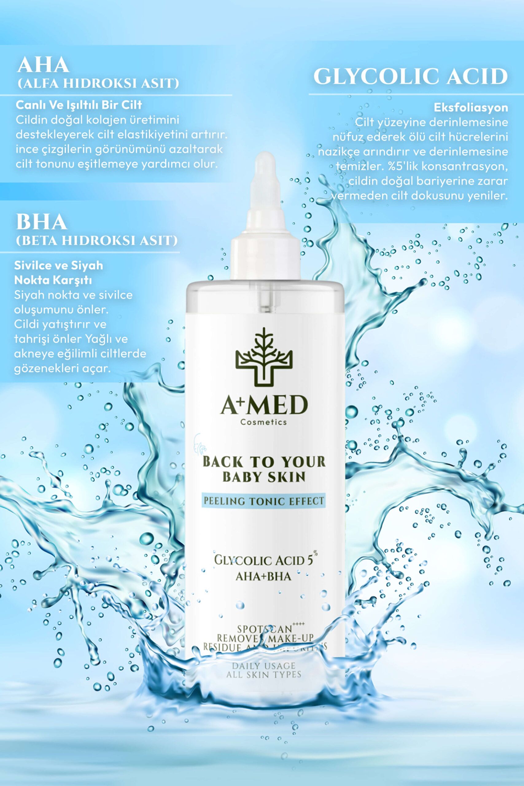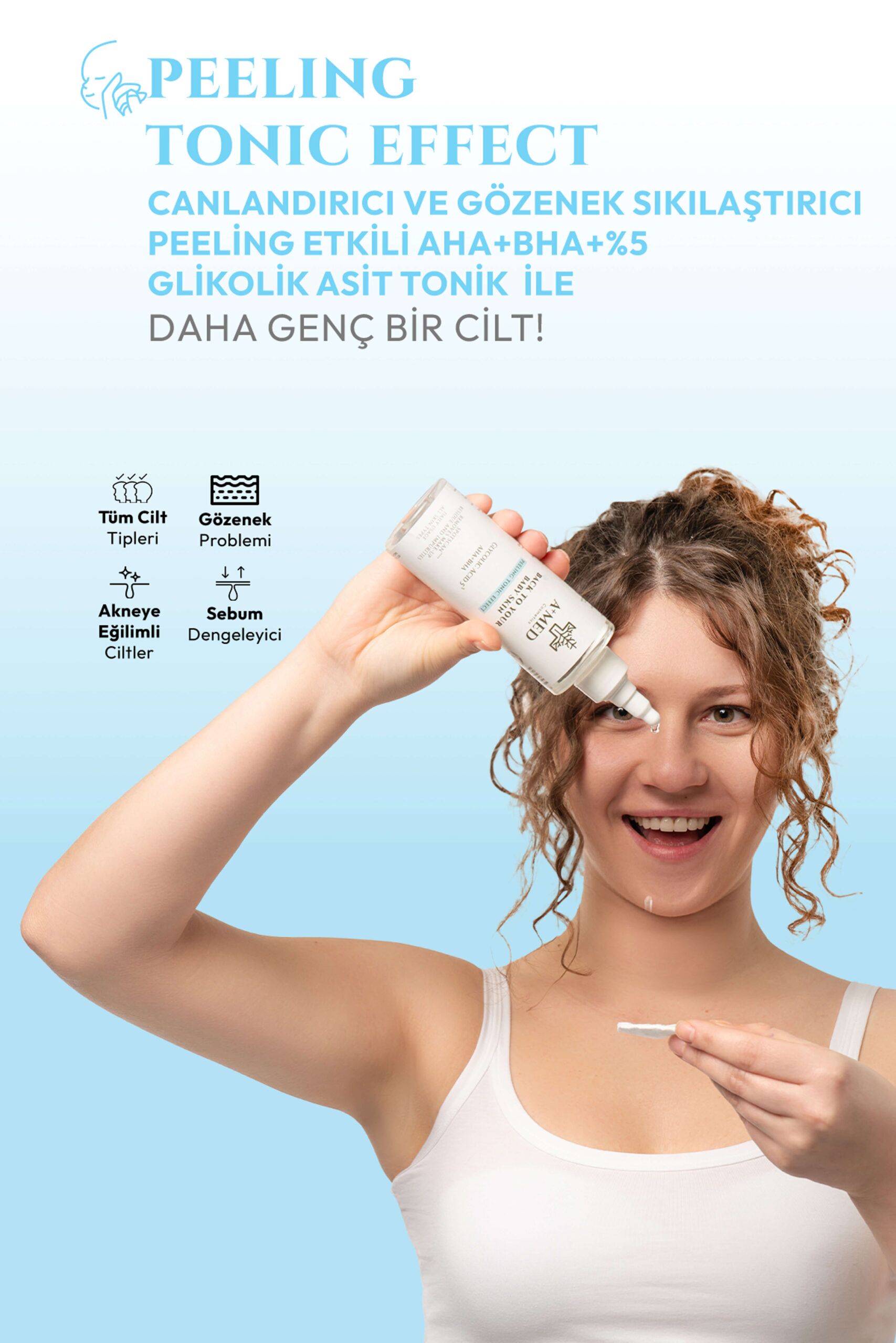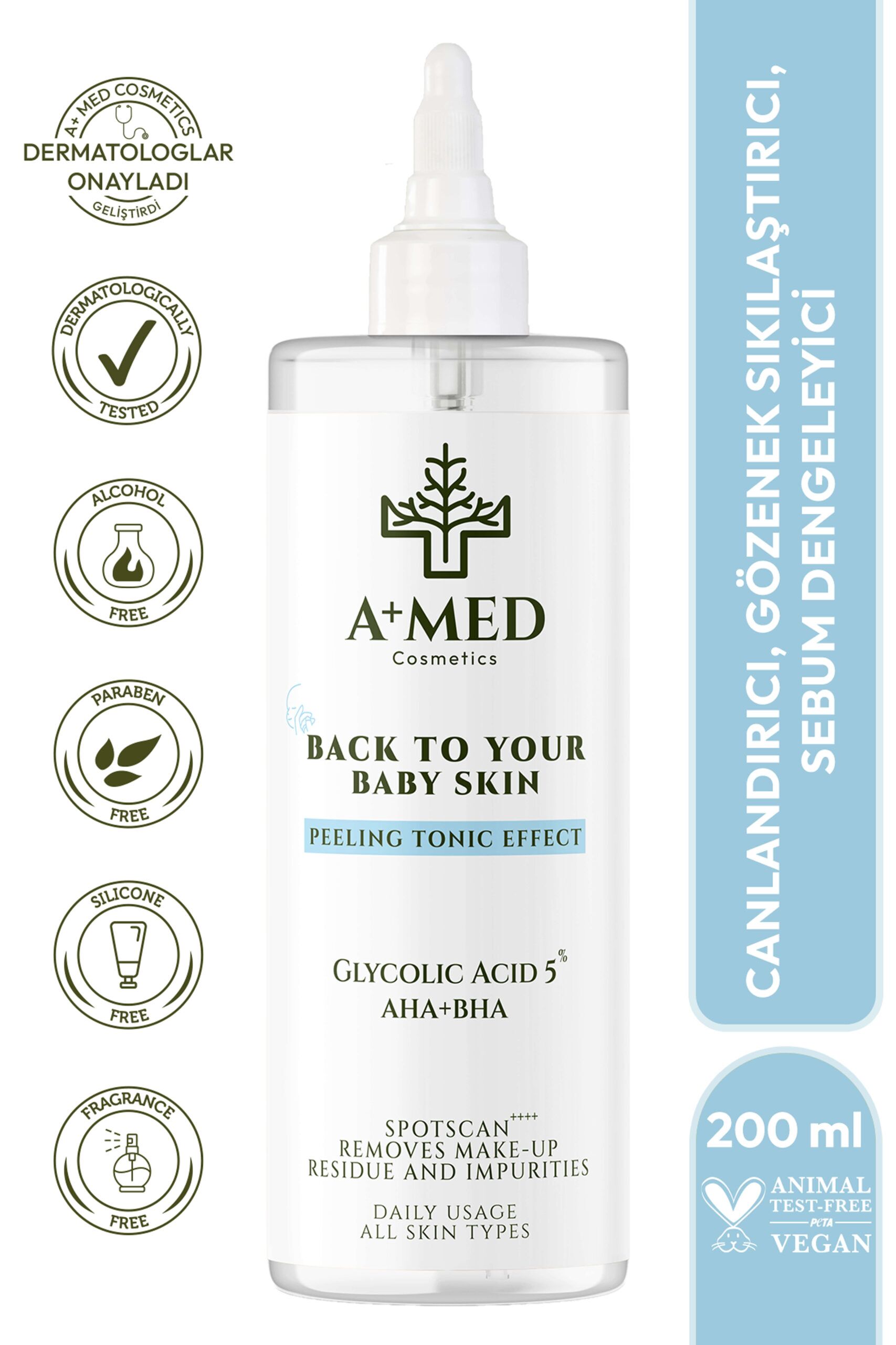 A+ MED Cosmetics Canlandırıcı Ve Gözenek Sıkılaştırıcı AHA+BHA+%5 Glikolik Asit Tonik 200 Ml